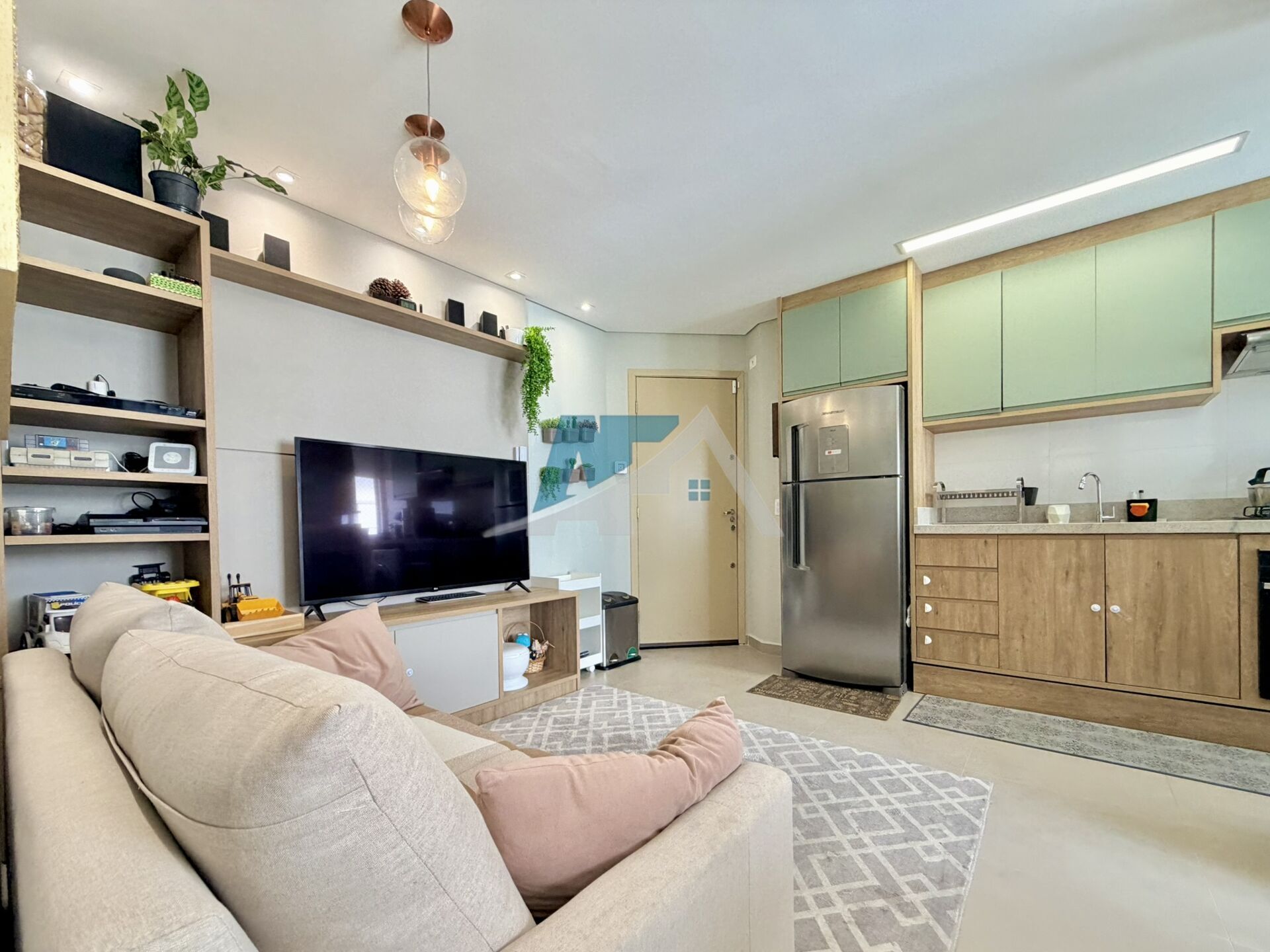 Sala de estar ampla e iluminada.