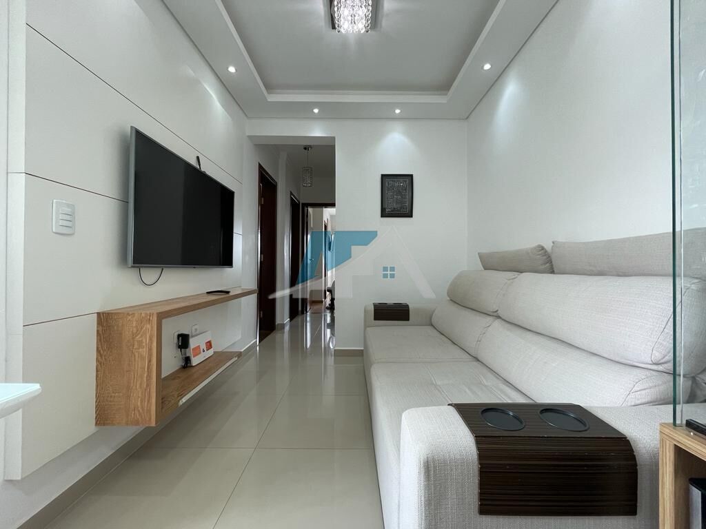 * Sala de estar e jantar integradas, com painel de TV;